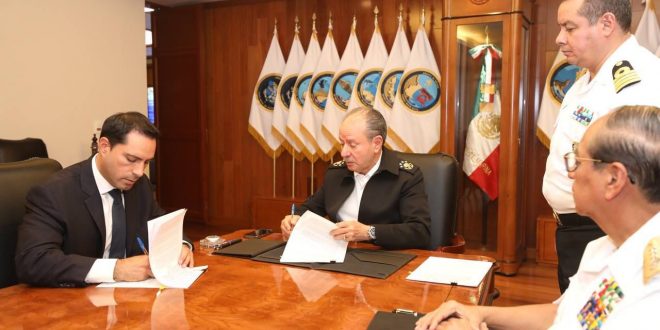 El Gobernador Mauricio Vila Dosal y el Secretario de Marina, Almirante José Rafael Ojeda Durán firmaron un convenio de colaboración para la ampliación y modernización del Puerto de Altura de Progreso, obra que se traducirá en inversión y generación de empleos en la entidad.