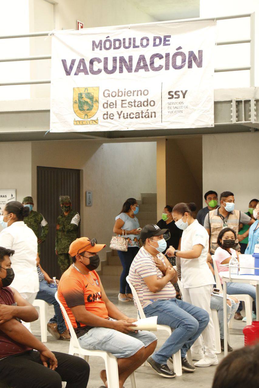 Este proceso, se informó, continúa este día con la administración de primeras dosis a la población de 30 a 39 años de los municipios de Valladolid, Umán, Tizimín, Oxkutzcab, Maxcanú, Acanceh, Tecoh, Yaxcabá, Tzucacab, Akil, Hunucmá y Chemax. Asimismo, se aplicarán segundas dosis a personas de 50 a 59 años de Tekax, Ticul y Conkal.