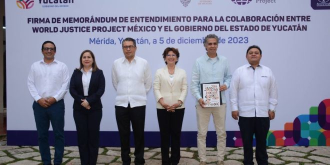 Mérida, Yucatán, 5 de diciembre de 2023.- Se da un paso más en la construcción de un Yucatán más justo y equitativo para todos los yucatecos al realizar la firma de convenio el Gobierno del Estado con World Justice Project, reconocida organización internacional que trabaja para avanzar en el Estado de Derecho en el mundo, como parte de las acciones que impulsa el Gobernador Mauricio Vila Dosal para aplicar una justicia transparente, la rendición de cuentas y la lucha contra la corrupción.