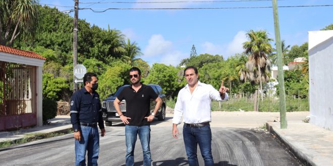PROGRESO, 08 de agosto del 2022.- El alcalde Julián Zacarías Curi acudió a la colonia “Ismael García”, con el objetivo de supervisar los trabajos, que elementos de la Dirección de Desarrollo Urbano y Obras Públicas, realizan como parte del período de pavimentación de 18,623.38 metros cuadrados en la ciudad.