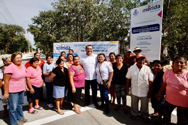 Mérida, 04 de febrero de 2020— El Ayuntamiento de Mérida avanza a buen ritmo en las obras de mejoramiento vial y esta mañana el alcalde Renán Barrera Concha entregó la pavimentación de calles en la colonia Leandro Valle para beneficio directo de 11,241 ciudadanos que habitan esa y otras colonias aledañas.