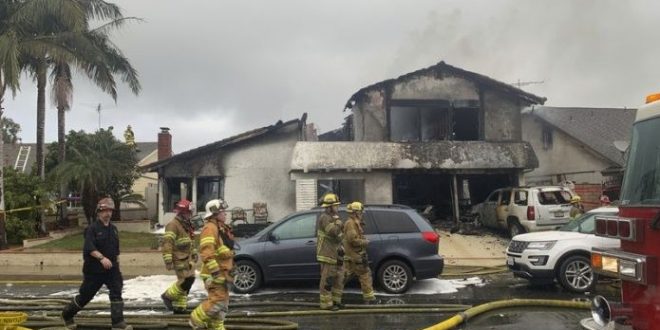 Yorba Linda, California, EE.UU.- Cinco personas murieron y otras dos resultaron heridas después de que una avioneta aparentemente se desintegró en el aire, arrojando sus pedazos sobre un vecindario del sur de California y provocando un incendio en una casa antes de caer en el patio trasero, dijeron autoridades el domingo.