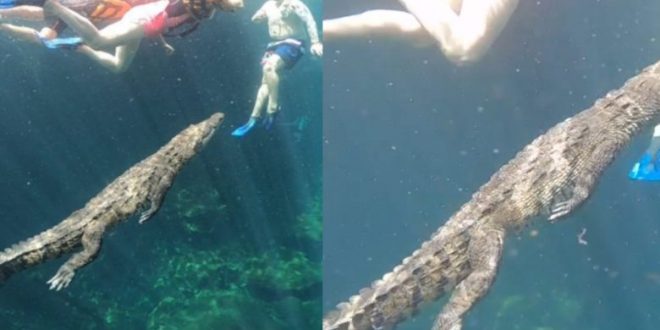 Home / Destacada espectáculos / ¡Ay nanita!: Cocodrilo nada cerca de turistas en Tulum, Quintana Roo (VIDEO)