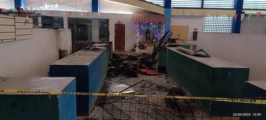 Mérida, Yucatán a 23 de marzo de 2025.- En puntual atención a un reporte ciudadano, la Subdirección de Mercados atendió, la madrugada de hoy, algunas afectaciones causadas por un conato de incendio en el área de las mesetas del mercado de San Roque.