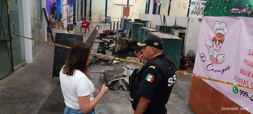 Mérida, Yucatán a 23 de marzo de 2025.- En puntual atención a un reporte ciudadano, la Subdirección de Mercados atendió, la madrugada de hoy, algunas afectaciones causadas por un conato de incendio en el área de las mesetas del mercado de San Roque.
