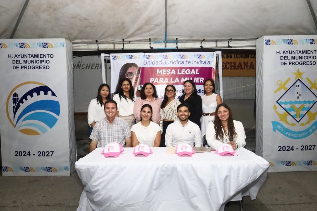 Progreso, Yucatán a 30 de abril de 2025. A fin de ofrecer herramientas necesarias para que las progreseñas conozcan sus derechos y sepan cómo defenderlos, el Ayuntamiento de Progreso, a través de la Unidad de Jurídica Municipal en coordinación con el Instituto Municipal de la Mujer (IMM), instaló ayer la primera Mesa Legal para la Mujer.