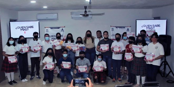 KANASÍN, Yuc., 28 de junio 2022.- El Ayuntamiento de Kanasín, en coordinación con la Dirección de Juventud de Kanasín, llevó al cabo la actividad “¿Quién Sabe Más?: El Gran Desafío”, en el que alumnos de las escuelas secundarias del municipio “Leandro Valle”, “Técnica 71” y “COBAY” tuvieron la oportunidad de participar en este reto de conocimiento, con preguntas y desafíos sobre temas acordes a su nivel de estudios.