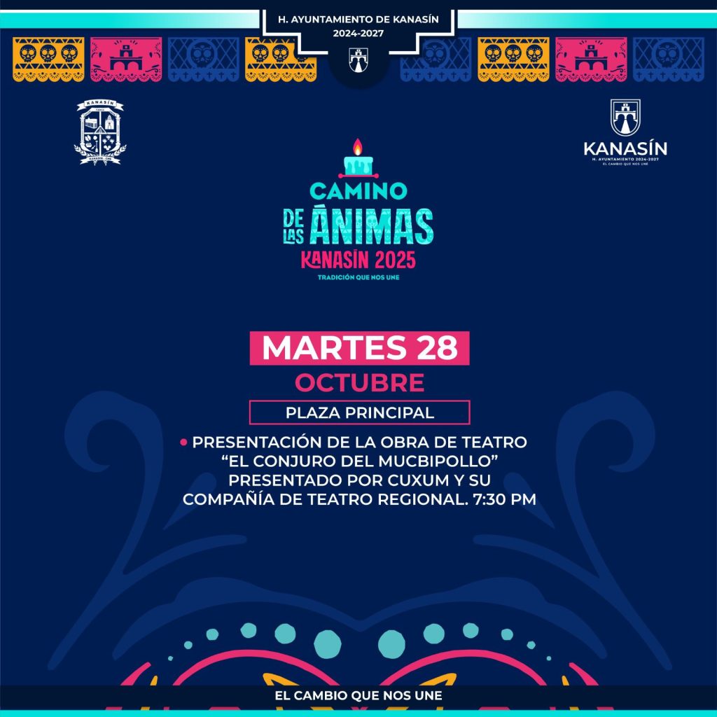 Las actividades continuarán el martes 28 en la plaza principal con la puesta en escena ‘El Conjuro del Mucbipollo’ presentado por Cuxum y su compañía de teatro regional a partir de las 19:30 horas.
