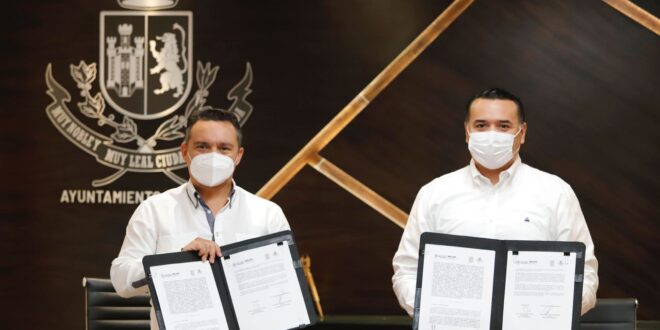 Mérida, Yucatán a 24 de noviembre de 2021. En una suma de esfuerzos para continuar mejorando los procesos catastrales en el Municipio, esta mañana el Ayuntamiento de Mérida suscribió un convenio de colaboración con el Instituto de Seguridad Jurídica Patrimonial de Yucatán (INSEJUPY), en donde las y los ciudadanos que soliciten su cédula catastral cuenten con una mejor atención y certeza jurídica al momento de hacer sus trámites, informó el Alcalde, Renán Barrera Concha.