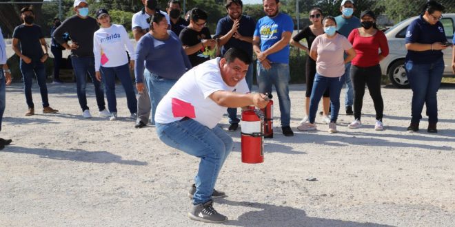 Mérida, Yucatán a 14 de noviembre de 2022.- Con el objetivo de salvaguardar y garantizar la seguridad en sus diferentes direcciones, la Unidad Municipal de Protección Civil realizó el curso “Prácticas de manejo de extintores” dirigido a las y los trabajadores del Ayuntamiento de Mérida que encabeza el Alcalde, Renán Barrera Concha.