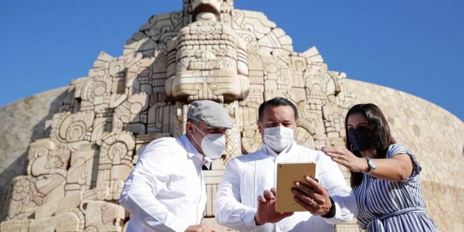 Mérida, 29 de diciembre de 2020. Estamos en un momento en el que la tecnología está más presente en nuestras vidas que nunca y por eso en el Ayuntamiento hemos emprendido proyectos innovadores que nos permitan fortalecer los atractivos turísticos de la ciudad ante meridanos y visitantes, dijo el alcalde Renán Barrera Concha.