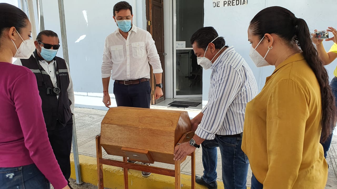 El sorteo se llevó a cabo esta mañana a un costado del Palacio Municipal, en presencia del secretario municipal, Alfredo Salazar Rojo y la síndico municipal, Elda Hevia Li y con la participación de la ciudadana Sugelly Huchin Carrillo, quien fungió como intermediaria para sacar los tres folios ganadores.