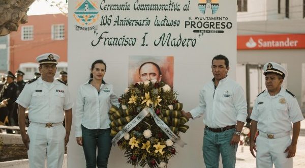 Progreso, Yucatán a 22 de febrero de 2019. El parque Independencia fue el lugar para que autoridades municipales recordaran esta mañana el 106 aniversario luctuoso de quien en vida condujera a los mexicanos por el camino de la democracia, para consolidar la libertad y la igualdad de la patria que lo vio nacer, el político mexicano Francisco I. Madero.