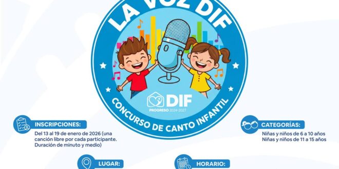 Progreso, Yucatán, a 16 de enero de 2026.- El Ayuntamiento de Progreso, a través del DIF Municipal y la Dirección de Cultura, informa a la población que el plazo para inscribirse al concurso de canto infantil “La Voz DIF” se ha extendido hasta el 19 de enero del presente año, con el objetivo de que más niñas y niños puedan formar parte de esta actividad que promueve la expresión artística y el desarrollo integral de las infancias, como parte de la visión de impulso cultural y social que promueve el alcalde Erik Rihani González.