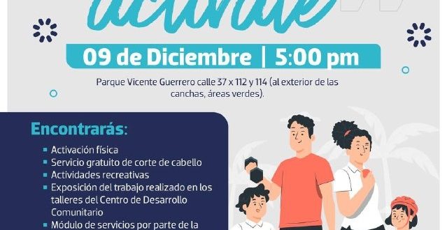 Progreso, Yucatán a 06 de diciembre de 2022. El parque de la colonia Vicente Guerrero será el lugar para que la Dirección de Desarrollo Social acerqué, el próximo viernes 9 de diciembre, diversos servicios y actividades a fin de promover la convivencia familiar asimismo despertar la participación ciudadana, tal como lo ha encomendado el alcalde Julián Zacarías Curi.