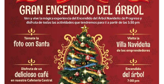 Progreso, Yucatán a 30 de noviembre de 2022. Mañana jueves 1º de diciembre, se llevará a cabo en el Parque Independencia, el tradicional encendido del Árbol de Navidad; un evento que ha preparado el Ayuntamiento de Progreso para que niños y adultos den la bienvenida a una de las épocas que más une a las familias: la Navidad.