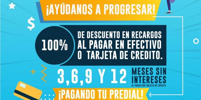 “Se les aplicará el 100% de descuento en recargos y multas al pagar en efectivo o tarjeta de débito y hasta 3, 6, 9 y 12 meses sin intereses con tarjeta de crédito. Adicionalmente, si el contribuyente tuviera un adeudo de cinco años se le condonará el más antiguo, por lo que les invitamos a acercarse a conocer más detalles de las promociones”, precisó el funcionario municipal.