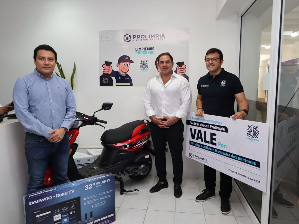 Progreso, Yucatán a 16 de mayo de 2023. Con el propósito de premiar a los ciudadanos que realizan el pago puntual del servicio de recolección de basura, el Ayuntamiento de Progreso encabezado por el alcalde Julián Zacarías Curi celebró el sorteo “Ponte al día con Prolimpia”.