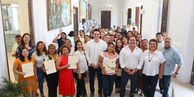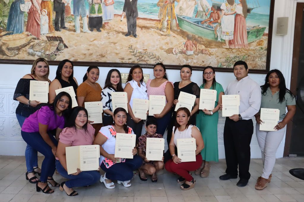 Dicha entrega, a modo de graduación, se efectuó ayer en la Sala Juárez del Palacio Municipal; ahí, el edil estuvo acompañado del Diputado del IX Distrito Local, Ing. Erik Rihani González; de la Síndico Municipal, C.P. Patricia Rosado González y de la directora del Centro de Capacitación para el Trabajo Industrial (CECATI) No. 169, Lic. Maribel Herrera Palma, quienes felicitaron a las 44 personas que concluyeron el curso.
