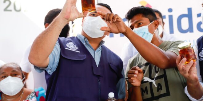Los proyectos visitados fueron el meliponario “Jats Úts Kaab” a cargo de la ciudadana Deysi Dzul Chalé, donde se dedican a la producción de productos derivados como la miel, jabones, propóleos, polen con miel, dulces de caramelo, entre otros y, posteriormente, se realizó en bicicleta un recorrido por la comisaría.