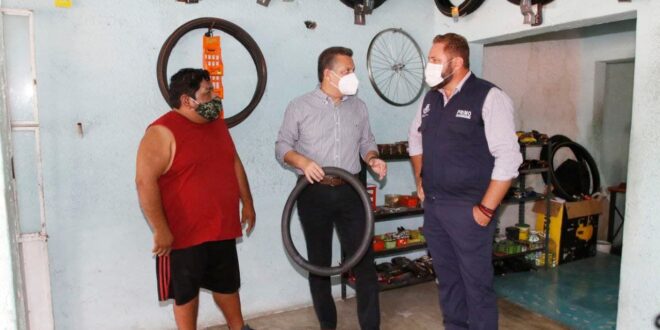 Esta mañana el Concejal visitó el taller de bicicletas “Tury”, ubicado en la calle 42 No. 886-A entre 24 y 19 de la colonia María Luisa, que a través del programa emergente “Surte tu negocio” recibió meses atrás un compresor de aire, herramienta que le ha permitido a la familia Kauil Puga, propietaria del establecimiento, hacer más eficiente su trabajo.