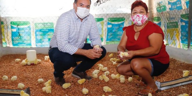 Delta Uitz agradeció al Alcalde que acuda personalmente a supervisar los buenos resultados que derivan del apoyo que recibió y con el cual adquirió alimento balanceado, pollitos de engorda, láminas de zinc y otros materiales para el techado de un anexo de galera.