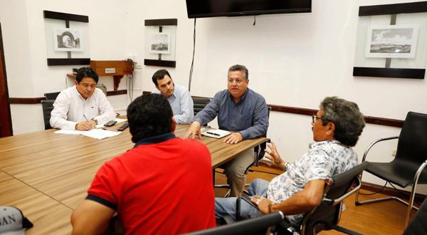 El secretario municipal, Alejandro Ruz Castro, recibió hoy a un grupo de líderes de agrupaciones de vendedores ambulantes que acudieron al Palacio Municipal para manifestar su inconformidad por ser retirados de diversos puntos del centro, en las inmediaciones de los mercados centrales y del parque Eulogio Rosado.