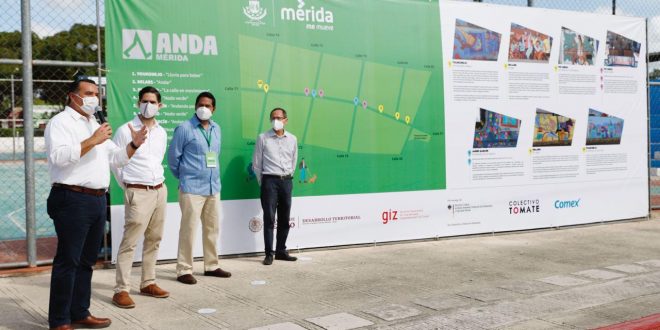 El Concejal presidió esta mañana la entrega de los trabajos del proyecto urbanístico táctico “Anda Mérida”, que realizaron en conjunto el Ayuntamiento, a través del Instituto Municipal de Planeación (IMPLAN), la Cooperación Alemana para el Desarrollo Sustentable (GIZ por sus siglas en alemán), la Secretaría de Desarrollo Agrario, Territorial y Urbano (SEDATU), el Colectivo Tomate y la iniciativa Comex por un México Bien Hecho.