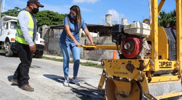En Xoclán Bech, donde los vecinos encabezados por Blanca Estela Chontal Chagala y Sara Canto Aguilar, se repararon los hoyancos de la calle 63 entre 122 y 124 en compañía de la diputada.