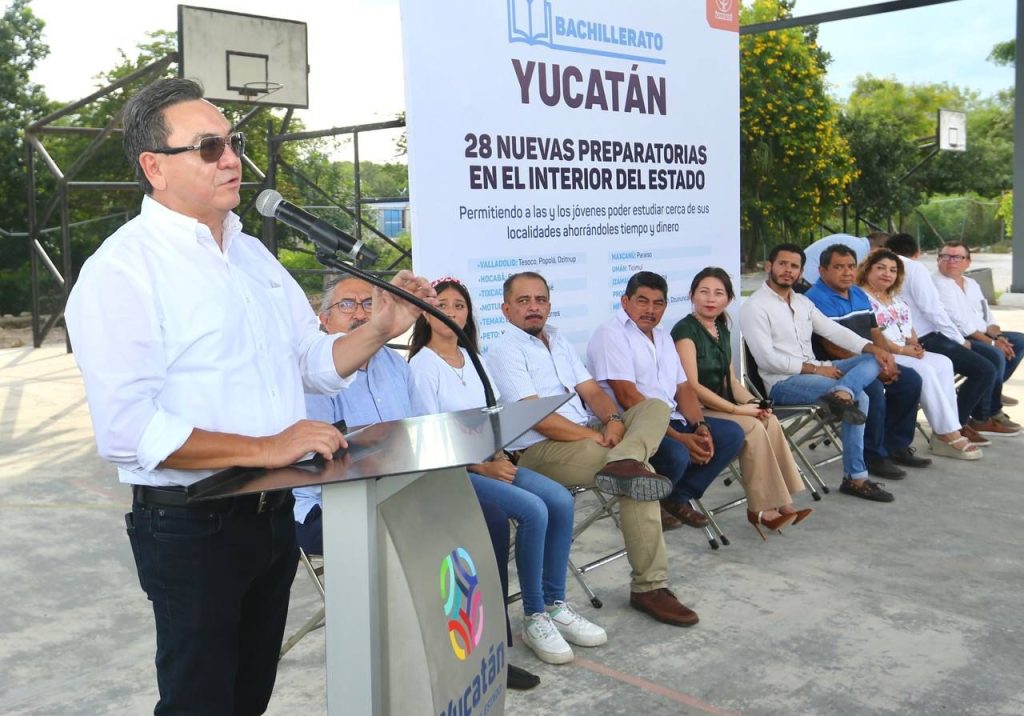 Acompañado de los comisarios municipal y ejidal, Santos Cetz Celis y Luis Armando Celis Cetz, Vidal Aguilar explicó que la oferta educativa de Bachillerato Yucatán es de 3,360 nuevos espacios que funcionan en turno vespertino y tendrán una capacidad de hasta 120 alumnos por escuela.