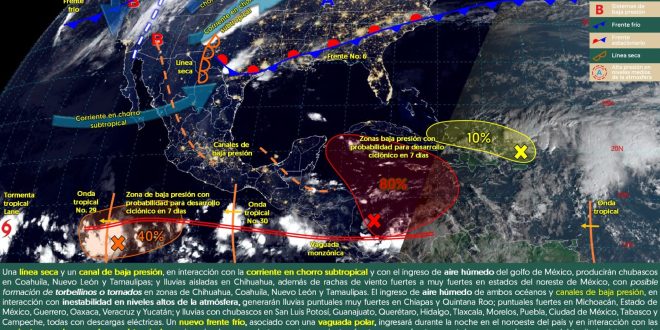 Un canal de bajas presiones sobre la península de Yucatán y el ingreso de aire marítimo tropical, estarán dejando chubascos en gran parte de Quintana Roo,