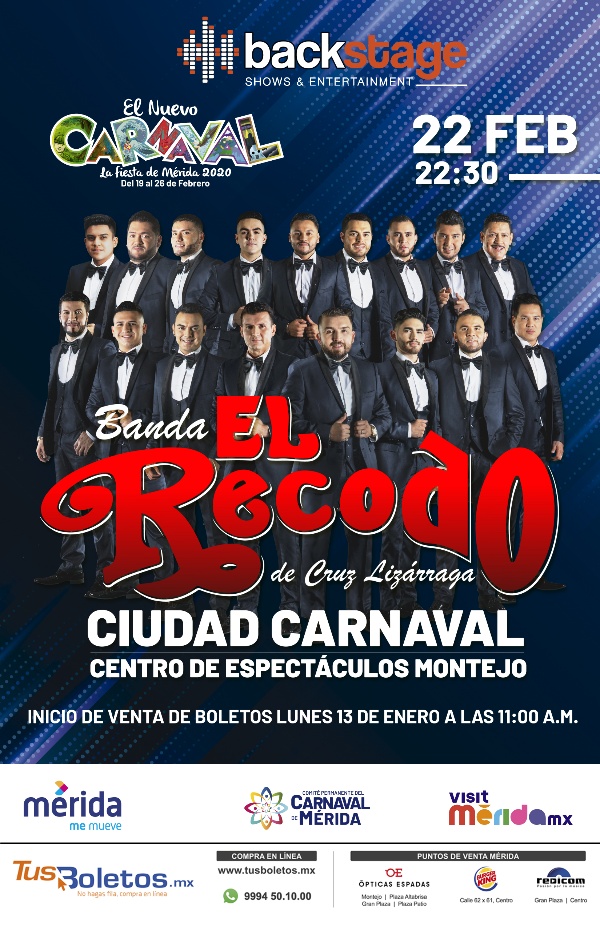 • Banda El Recodo se presentará el sábado 22 de febrero en el Centro de Espectáculos Montejo