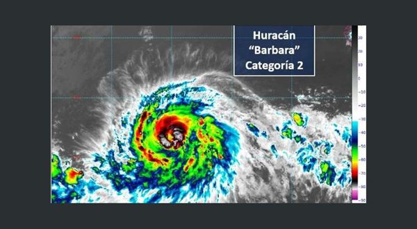 El huracán Bárbara que pasó de tormenta tropical a huracán categoría 1, aumentó su poder y se ha convertido en huracán categoría 2. Mientras se aleja de costas nacionales, Barbara se intensificó rápidamente a huracán de categoría 2 en el Océano Pacífico, informó hoy martes el Servicio Meteorológico Nacional (SMN).