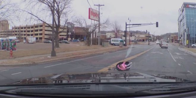 En el video grabado por una cámara colocada en el tablero del automóvil del internauta identificado como Chad Cheddar Mock, se aprecia cómo la bebé queda tirada sobre la avenida mientras su madre se aleja a toda velocidad.