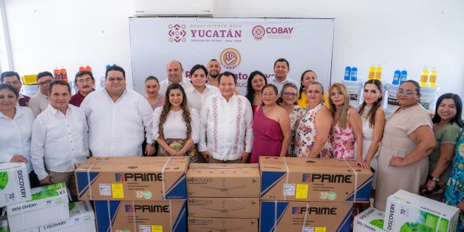 Asimismo, el titular del Ejecutivo estatal entregó al plantel Kinchil insumos y materiales del programa “Cobay de 10”, que con una inversión superior a ocho millones de pesos, busca promover espacios dignos y funcionales en los 72 planteles distribuidos en todo Yucatán.