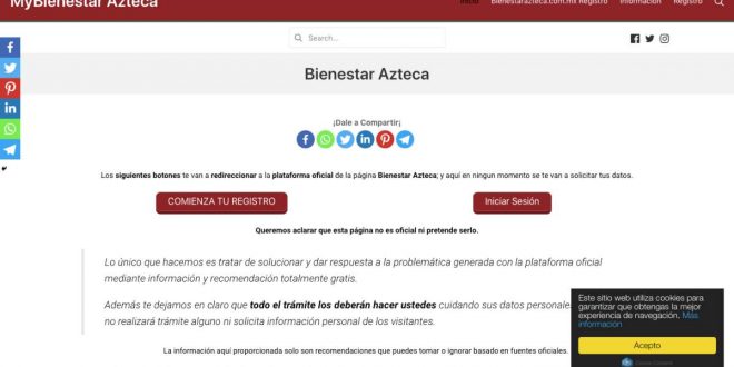 Este martes, 21 de julio, la Coordinación Nacional detectó una página denominada bienestarazteca.mx, cuyo dominio fue adquirido en los últimos días, y que contiene información relacionada con el registro y pago de la beca a estudiantes de educación media superior, utilizando material de difusión de la institución, imágenes del aplicativo electrónico, así como enlace NO SEGUROS a la plataforma oficial.