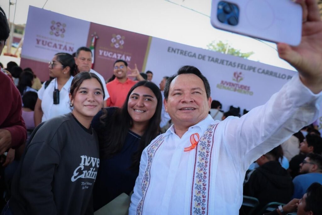 Al dirigir su mensaje desde la Unidad Deportiva Villa Palmira, el Gobernador relató que esta iniciativa fue concebida previo a su llegada al Gobierno, ya que las y los estudiantes de nivel superior de universidades públicas de Mérida no pueden acceder a las becas federales, por lo que, con la tarjeta Felipe Carrillo Puerto de esta iniciativa estatal, las y los beneficiarios recibirán tres mil pesos de forma bimestral a partir de este año.