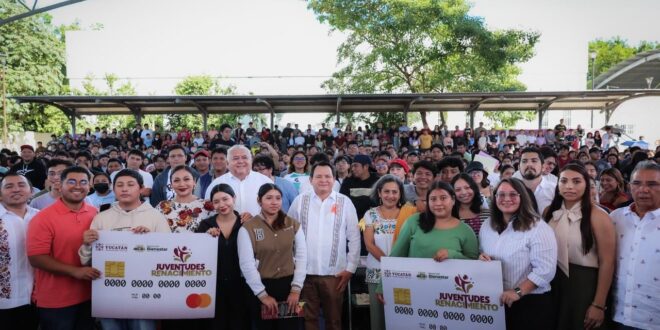 “Y hoy hacemos realidad, algunos años después de que me imaginé esta beca, que más de 9,100 universitarias y universitarios van a recibir la tarjeta Felipe Carrillo Puerto con un apoyo bimestral para que puedan terminar su carrera. Porque sí les puedo asegurar: mientras ustedes sigan siendo alumnos regulares, ya tienen la beca y va a ser hasta el día que reciban el título en sus manos”, aseguró.