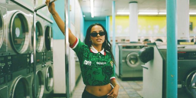 La cantante Becky G lució la playera de la Selección Mexicana que usó en el Mundial de Francia 1998, teniendo una modificación en el centro, donde se ve el rostro de Jesús por la Piedra del Sol Azteca.