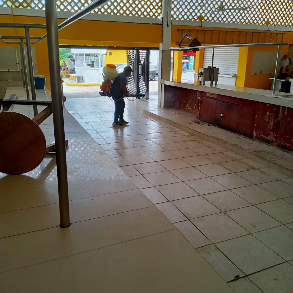 –Aunque las acciones de abatización están centradas en el combate al mosco, por instrucciones del alcalde Gaspar Ventura Cisneros Polanco se ofrece desinfección y limpieza integral a estos espacios de gran importancia por el manejo de alimentos para la localidad.