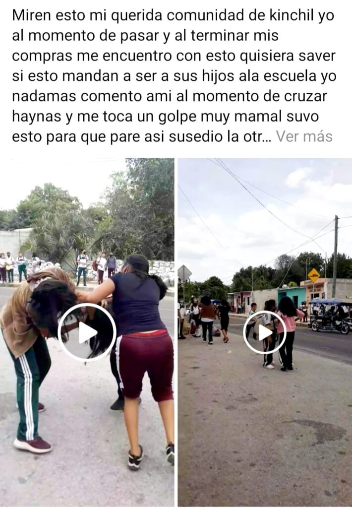 Kinchil, Yuc., a 25 de mayo.- Un pleito entre adolescentes de una escuela secundaria de este municipio, se suscitó esta tarde en la colonia la Glorieta, justo frente al antiguo tinaco de agua potable.