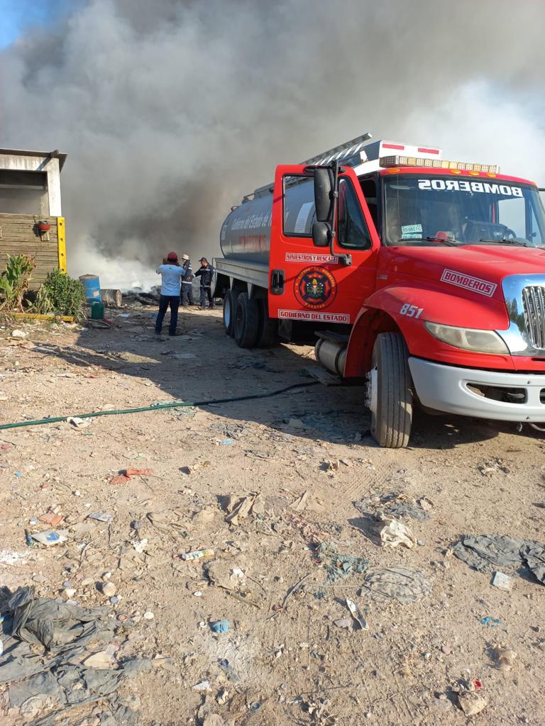 En coordinación con Protección Civil del Estado, los Bomberos apoyan a las autoridades municipales para combatir el siniestro, el cual genera una densa humareda porque entre los desperdicios hay llantas.
