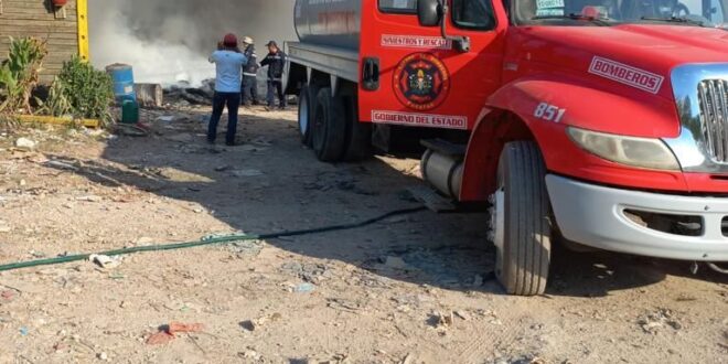 En coordinación con Protección Civil del Estado, los Bomberos apoyan a las autoridades municipales para combatir el siniestro, el cual genera una densa humareda porque entre los desperdicios hay llantas.
