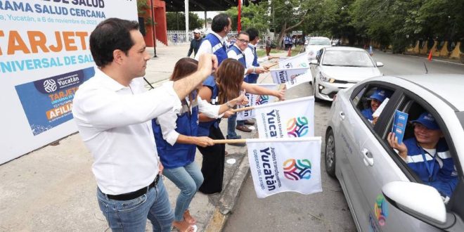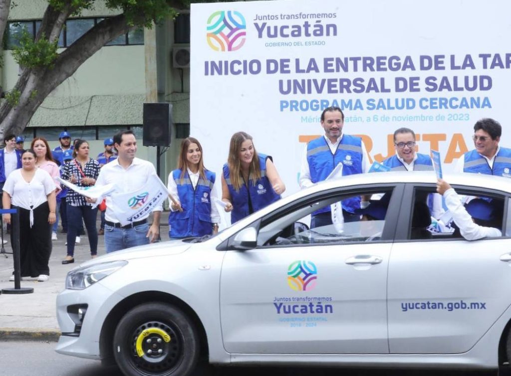 Mérida, Yucatán, 6 de noviembre de 2023.- El Gobernador Mauricio Vila Dosal dio el banderazo de salida de las brigadas de los Asistentes del Pueblo que estarán entregando casa por casa la nueva Tarjeta Universal de Salud a las familias de los 106 municipios del estado, con la que las yucatecas y los yucatecos que más lo necesitan podrán acceder a nuevos servicios gratuitos en los centros de salud de todo el estado a partir de enero de 2024.