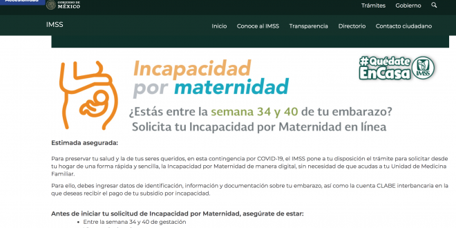 De tal forma, en el portal www.imss.gob.mx/maternidad se difunde información especializada sobre diversos temas de su interés: cómo solicitar la Incapacidad por Maternidad en línea y la opción para descargar la Cartilla de la Mujer Embarazada, que contiene recomendaciones para lograr un embarazo, parto y lactancia saludables