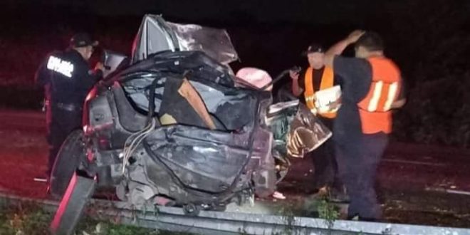 Hoctún, Yuc., a 24 de junio 2024.- Prensado entre los hierros retorcidos, falleció el conductor de un vehículo en los primeros minutos de ayer domingo, cuando éste se estrelló contra la base de concreto del puente de Hoctún, en la carretera Mérida-Valladolid.
