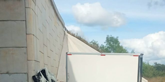 Tinum, Yuc. a 20 de diciembre 2024.- Un fatal accidente ocurrió esta mañana en el kilómetro 112 de la carretera Mérida-Cancún a la altura del puente de Pisté-Tinum. Un camión de carga se estrelló contra un muro, dejando como saldo la pérdida de la vida del conductor y de otra persona que lo acompañaba.