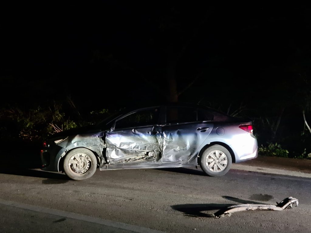 Kinchil, Yuc., a 18 de diciembre 2023.- Un seco encontronazo entre dos compactos, arrojói daños materiales en miles de pesos y de milagro no hubo ninguna persona fallecida, esta noche a la altura del kilómetro 30, del entronque Tetiz-Kinchil.