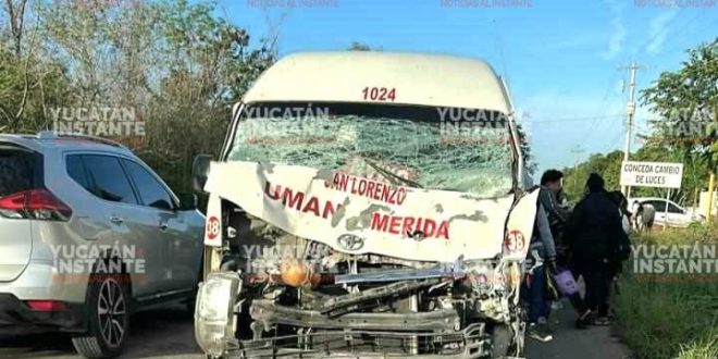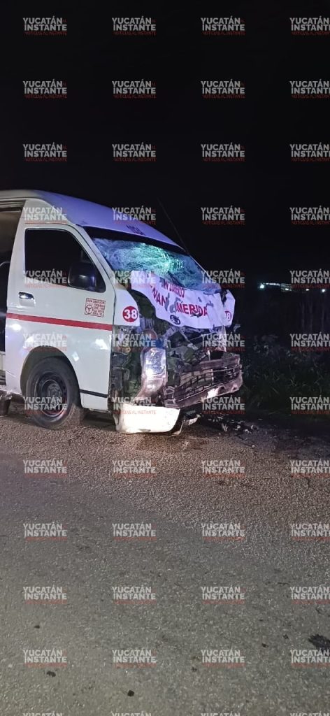 Umán, Yuc., a 7 de diciembre.- EI encontronazo entre un taxi colectivo y un caballo arrojó siete personas lesionadas, entre ellas el chofer ‘atorado’, en la Umán-Oxholón.