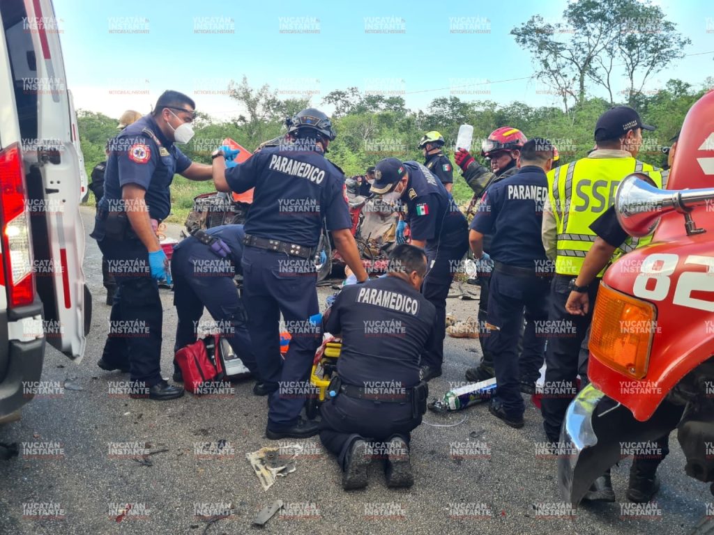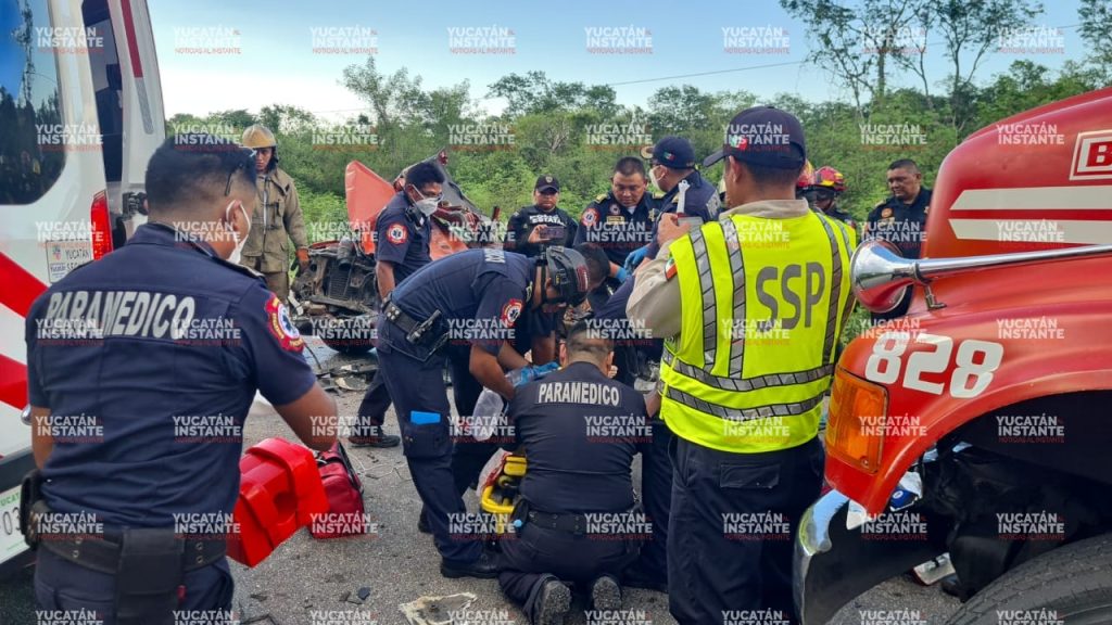 Según se supo, el brutal choque ocurrió entre una camioneta y un autobús de transporte de trabajadores de la Cervecería yucateca en la vía Mérida-Tetiz, a la altura del kilómetro 6.